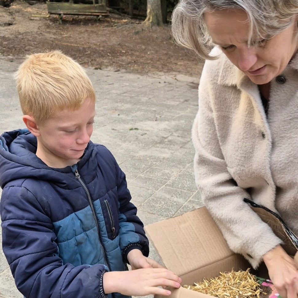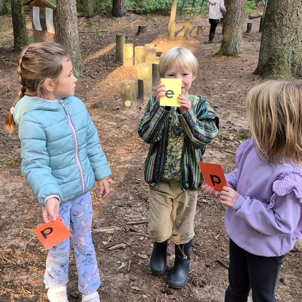 De kinderen gingen meteen op zoek. Vonden alle letters en maakten er samen een zin van. Met die zin konden ze de juiste plek vinden waar iets verstopt was.